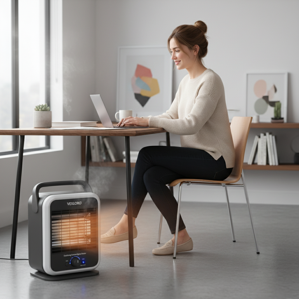 Experience immediate, targeted warmth with the Vexloro Oscillating Ceramic Space Heater. Engineered for efficiency and safety, this compact heater uses advanced ceramic technology and wide-angle oscillation to quickly eliminate cold spots in any room. Its sleek, modern design and user-friendly controls make it the perfect heating solution for your home or office.